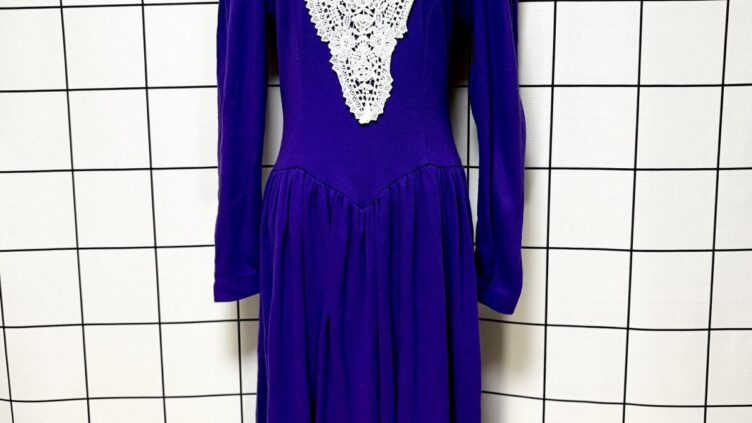 古着屋チエルアルコニット フロントレース パープル クラシカル ガーリー レトロ USA古着 ヴィンテージワンピース