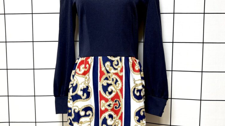 古着屋チエルアルコタートルネック ネイビー 切り替えし レトロ USA古着 ヴィンテージワンピース