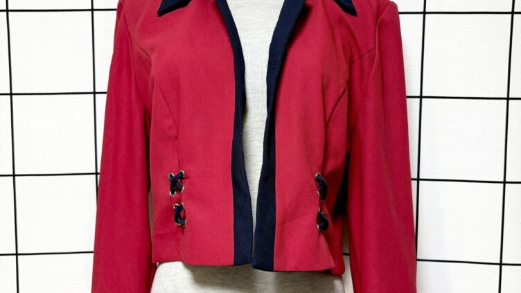 古着屋チエルアルコショート丈 前開き バイカラー レッド ネイビー レトロ USA古着 ヴィンテージジャケット