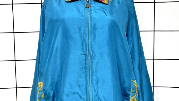 古着屋チエルアルコスカーフ柄 ゆったりサイズ ジップアップ レトロ USA古着 ジャンパー ヴィンテージブルゾンジャケット