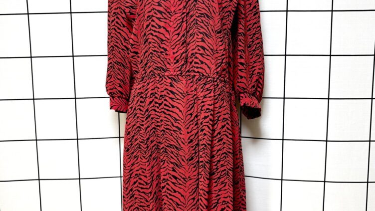 古着屋チエルアルコUNIONMADE アート柄 レッド ブラック ウエストゴム レトロ USA古着 ヴィンテージワンピース