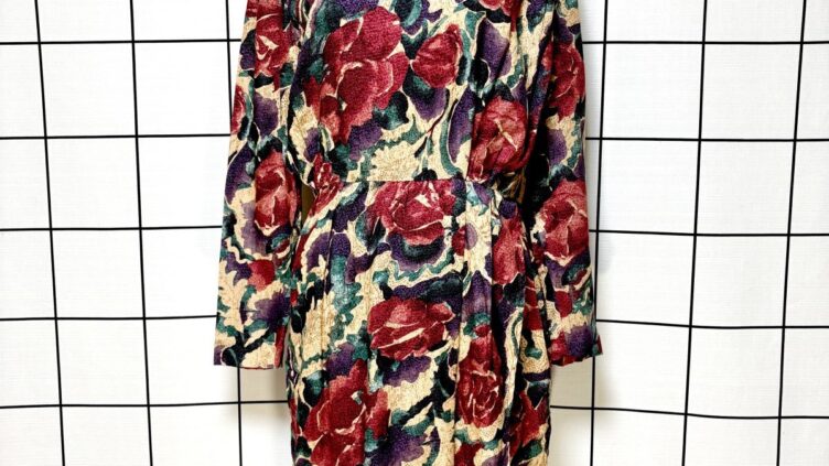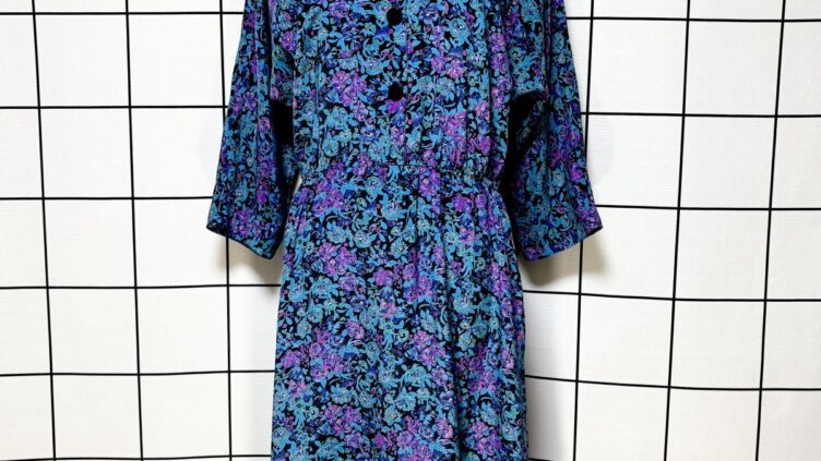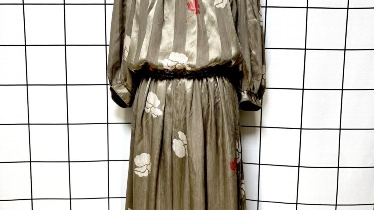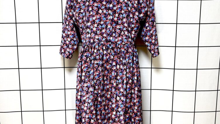 古着屋チエルアルコ花柄 ウエストゴム レトロ 長袖 USA古着 ヴィンテージワンピース