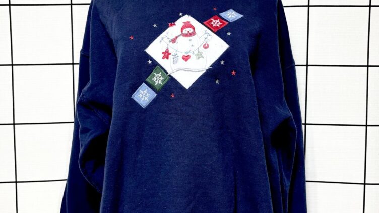 古着屋チエルアルコ雪だるま ネイビー ハイネック レトロ USA古着 ヴィンテージスウェット