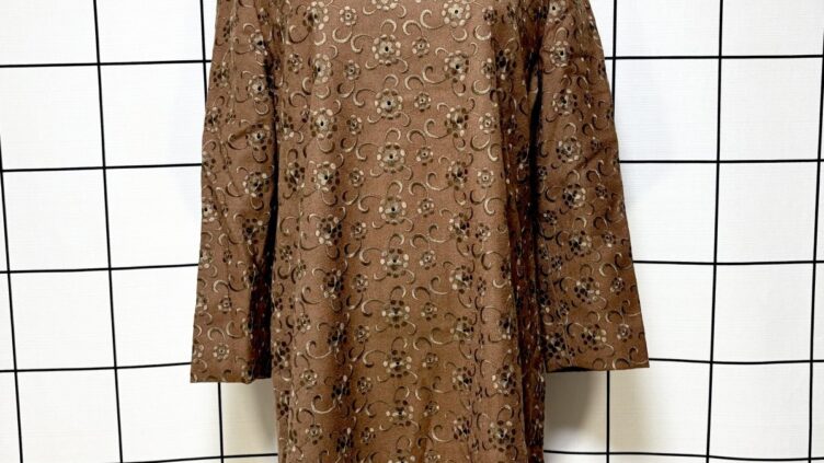 古着屋チエルアルコ総花柄 ノーカラー ウエストゴム レトロ USA古着 ヴィンテージワンピース