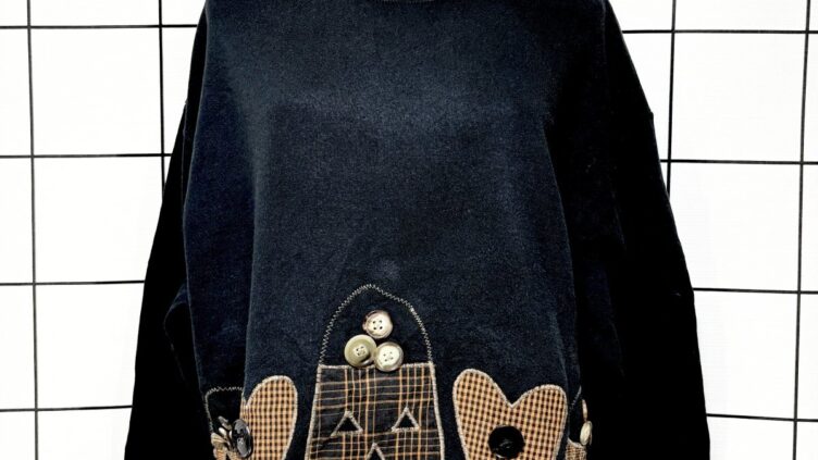 古着屋チエルアルコハロウィン刺繍 チェック ブラック レトロ USA古着 ヴィンテージスウェット