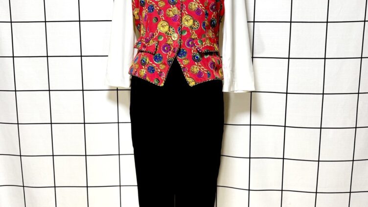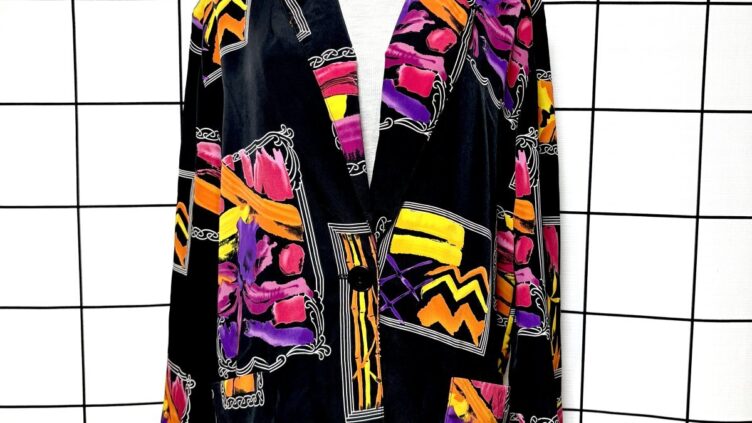 古着屋チエルアルコカラフルアート柄 ブラック シングルボタン レトロ USA古着 ヴィンテージジャケット
