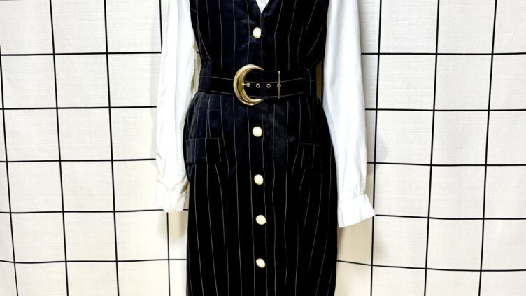 古着屋チエルアルコベルトセット ストライプ 前開き モノクロ レトロ USA古着 ヴィンテージワンピース