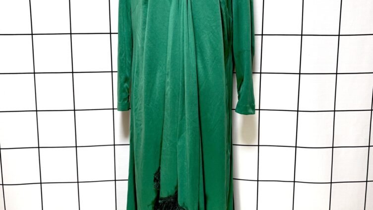 古着屋チエルアルコリボンタイ ビジュー装飾 グリーン パーティーにもおすすめ レトロ ヨーロッパ古着 ヴィンテージドレス