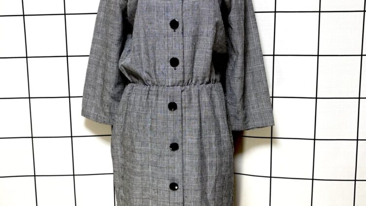 古着屋チエルアルコグレンチェック ポケットチーフ ウエストゴム レトロ 長袖 USA古着 ヴィンテージワンピース