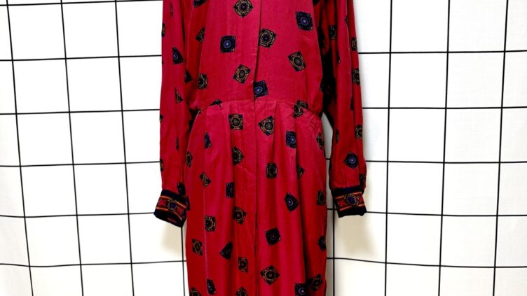 古着屋チエルアルコスカーフ柄 前開き レッド レトロ USA古着 ヴィンテージワンピース