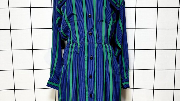 古着屋チエルアルコストライプ 前開き レトロ 長袖 USA古着 ヴィンテージワンピース