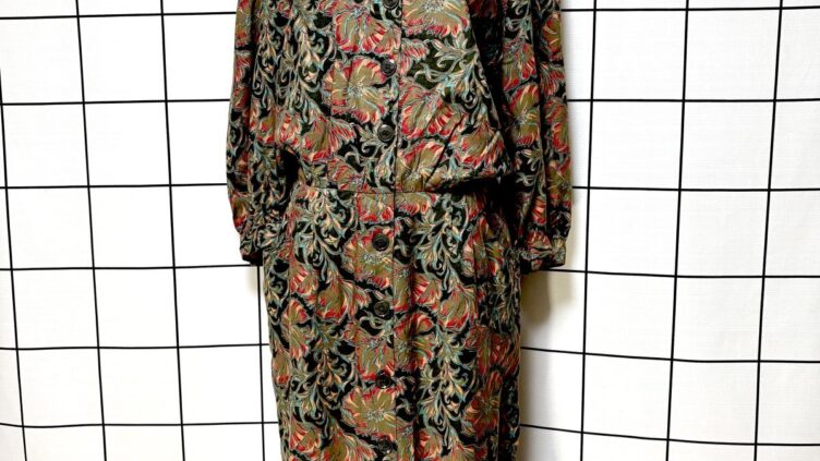 古着屋チエルアルコ花柄 ティアード プリーツ切り替え レトロ 長袖 USA古着 ヴィンテージワンピース