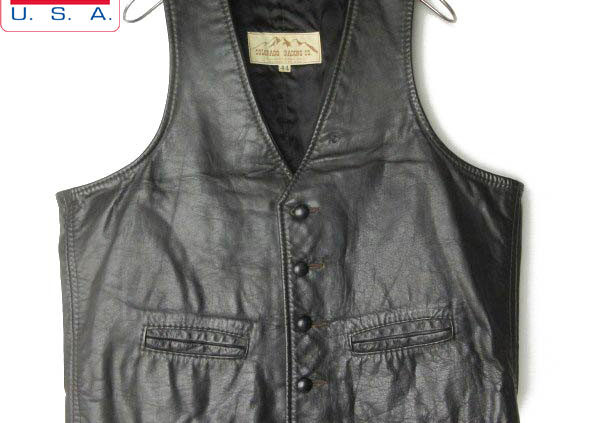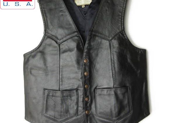 BRIDGEUSA製 70s-80s Leatherland レザー ベスト 黒 44 M程度 ブラック アメリカ製 バイカー ビンテージ D152