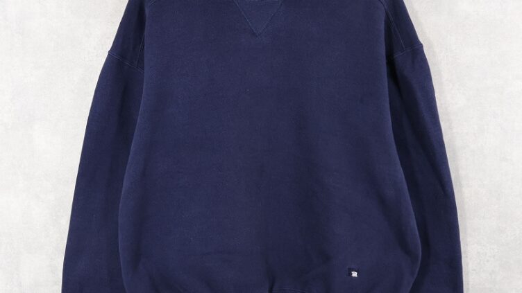 90’s RUSSELL ATHLETIC USA製 前V タートルネック 無地スウェット NAVY M