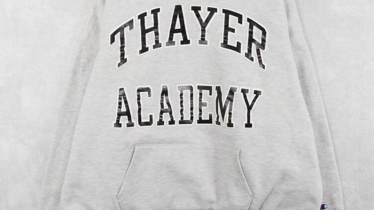 80〜90’s Champion 青刺繍タグ 中期 USA製 “THAYER ACADEMY” ダブルフェイススウェット XL