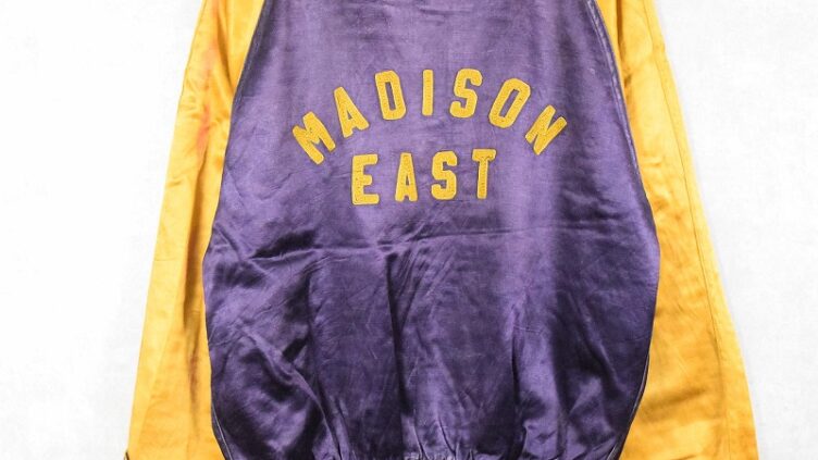 40〜50’s Wilson USA製 “MADISON EAST” チェーン刺繍 サテンボタンスタジャン SIZE42