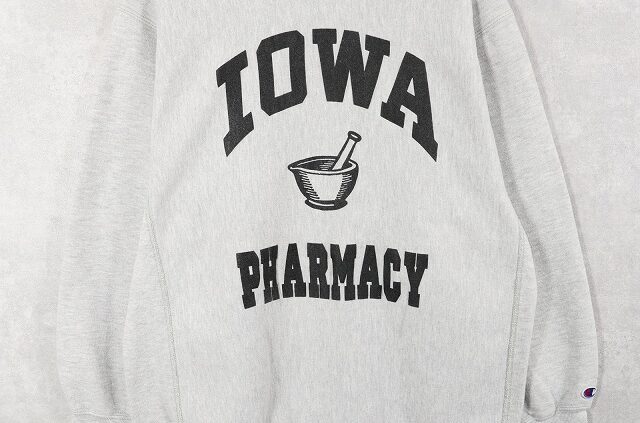 90’s Champion REVERSE WEAVE USA製 “IOWA PHARMACY” プリントスウェット L