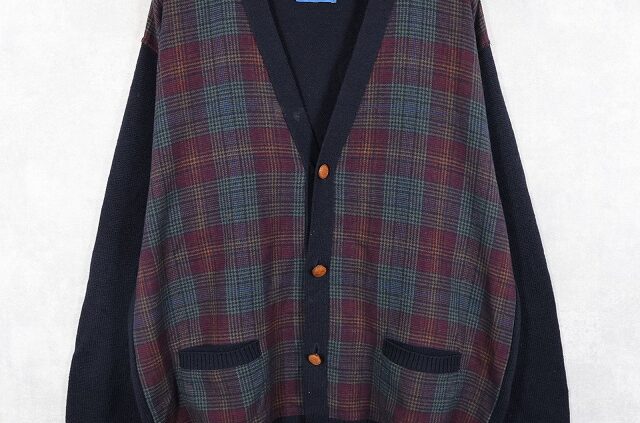 70’s PENDLETON USA製 チェック柄切り替え ウールニットカーディガン XL