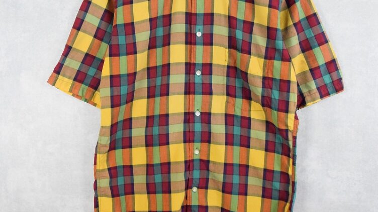 60〜70’s チェック柄 マチ付き コットンボタンダウンシャツ S