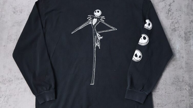 The Nightmare Before Christmas “Jack Skellington” 映画キャラクタープリントロンT BLACK
