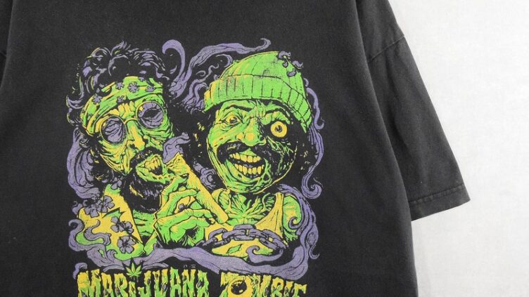 CHEECH&CHONG “MARIJUANA ZOMBIE” コメディアン ガンジャプリントTシャツ BLACK