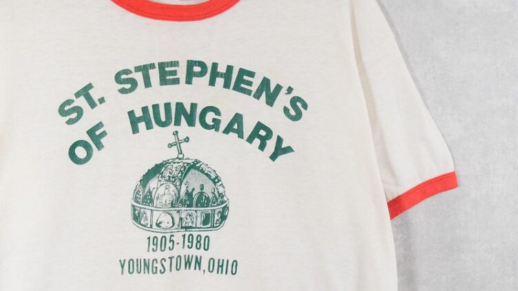 80’s Hanes USA製 “ST.STEPHEN’S OF HUNGARY” 王冠プリント リンガーTシャツ XL