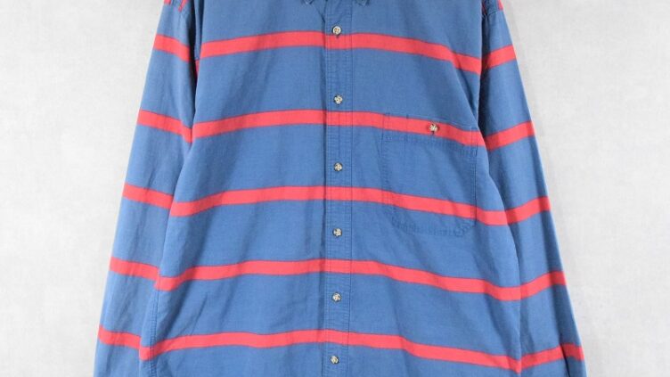 80〜90’s Eddie Bauer ボーダー柄 ボタンダウンコットンシャツ L