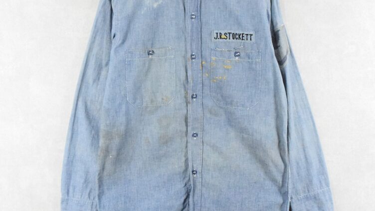 60’s U.S.NAVY ステンシル入り シャンブレーシャツ size14 1/2