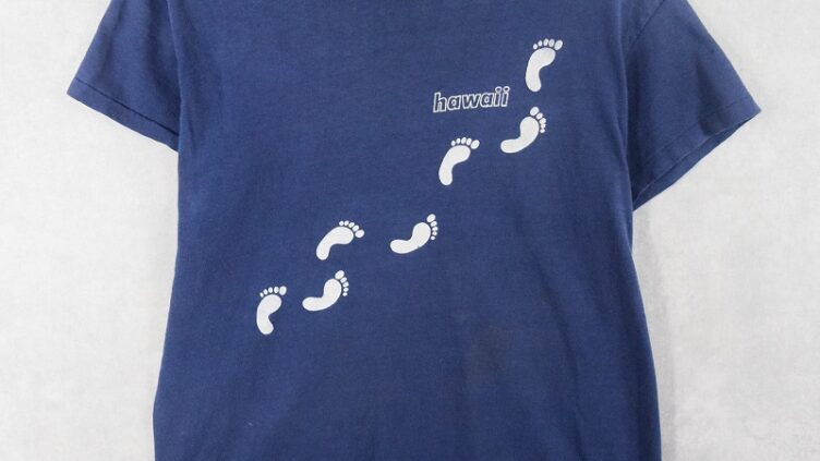 70’s USA製 “hawaii” 足跡プリントTシャツ NAVY L