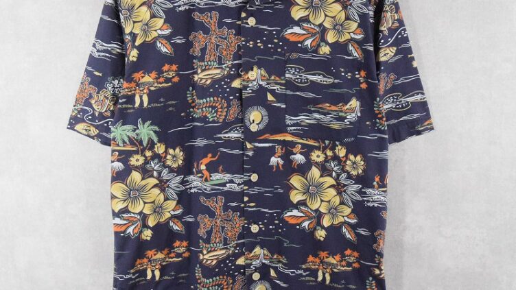 90’s POLO SPORT Ralph Lauren オールオーバーパターン コットンアロハシャツ NAVY S