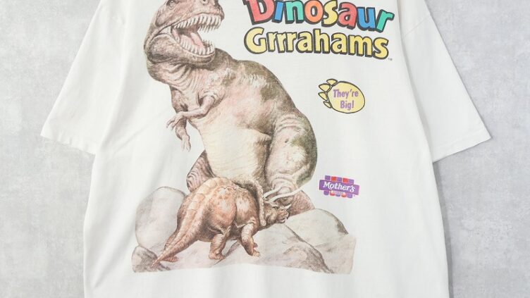 90’s Mother’s COOKIES USA製 “Dinosaur Grrrahams” 食品メーカープリントTシャツ XL