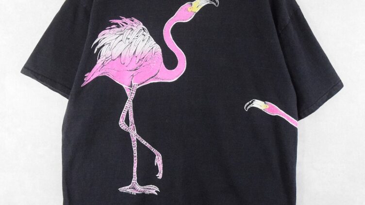 80’s HARLEQUIN USA製 フラミンゴ 巻きプリントTシャツ BLACK XL