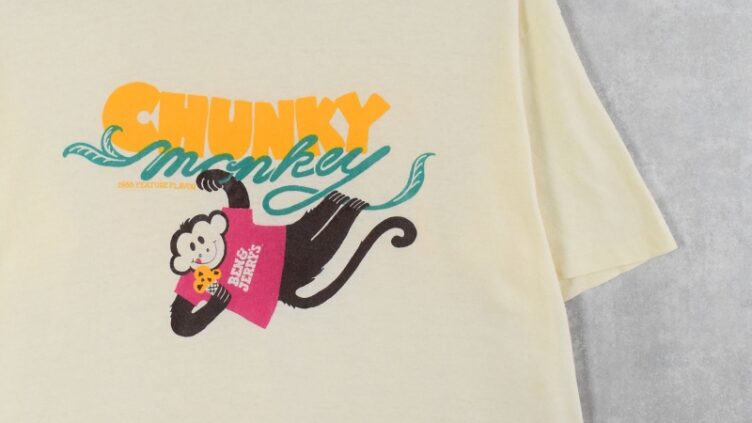 【SALE】 80’s BEN&JERRY’S USA製 “CHUNKY monkey” 企業プリントTシャツ XL