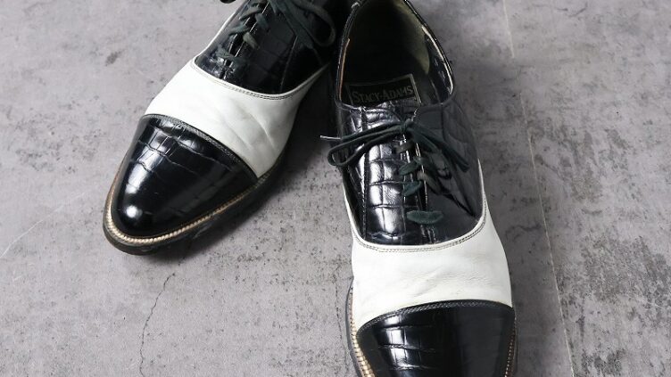 80~90’s STACY-ADAMS 型押しクロコ ストレートチップ レザーシューズ US8D