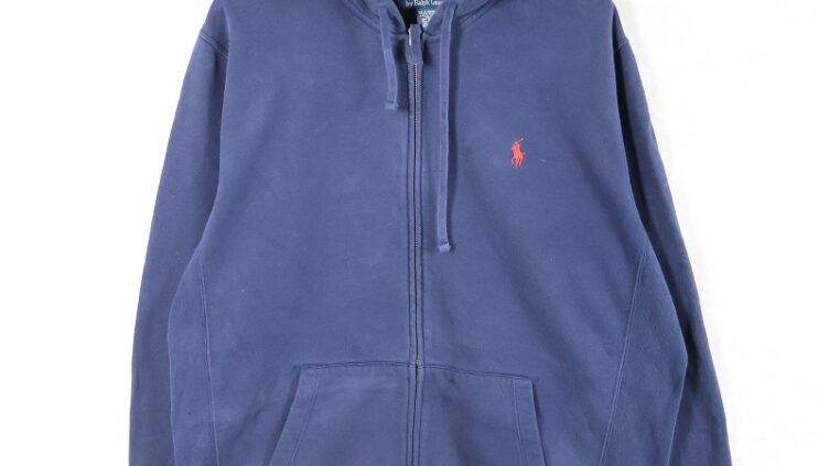 POLO Ralph Lauren REVERSE WEVAE TYPE ロゴ刺繍 スウェットジップパーカー NAVY L