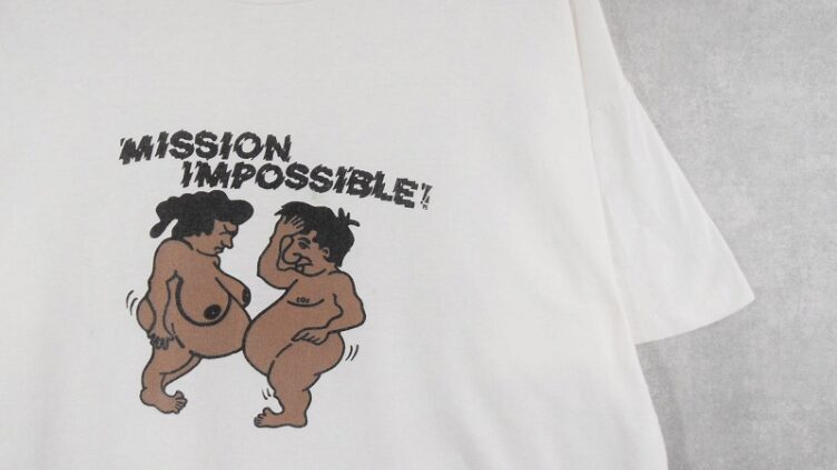 90’s “MISSION IMPOSSIBLE!” シュールイラストプリントTシャツ L