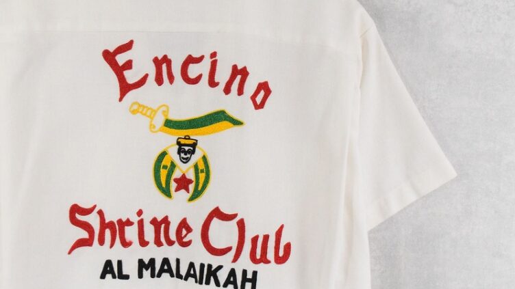 60’s Mr.Mort’s USA製 “Encino Shrine Club” ãƒ�ェーン刺ç¹� レーヨンボーリングシャツ L
