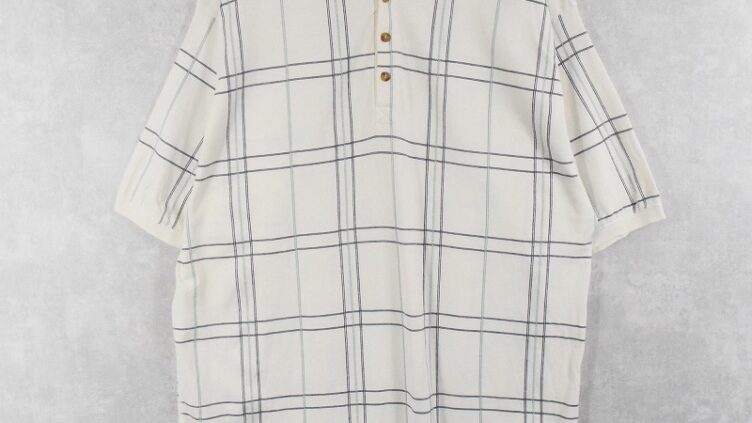 80〜90’s Eddie Bauer USA製 ãƒ�ェック柄 ヘンリーãƒ�ックTシャツ XL