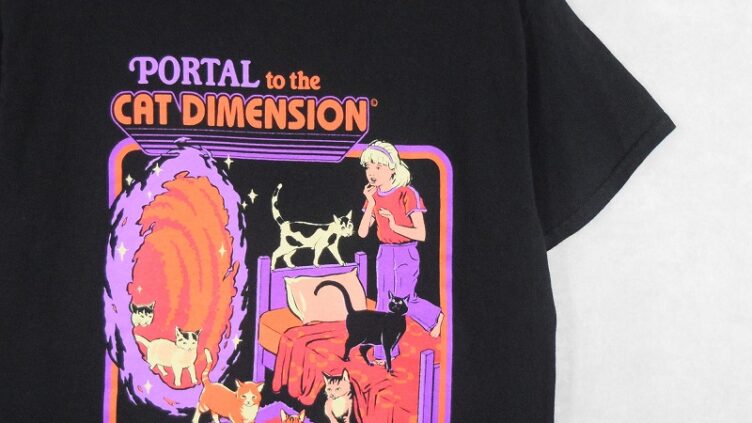 Steven Rhodes “PORTAL to the CAT DIMENSION” イラストプリントTシャツ BLACK M
