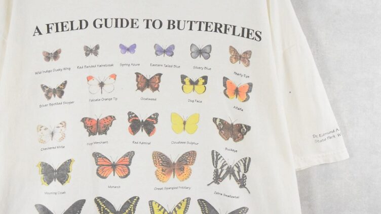 “A FIELD GUIDE TO BUTTERFLIES” 蝶プリントTシャツ XL