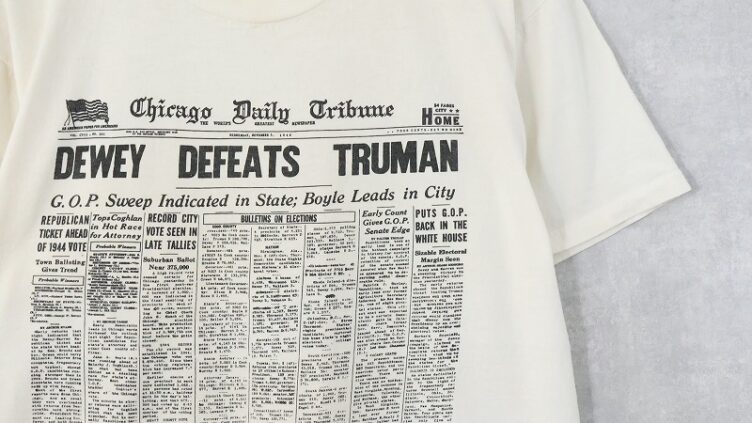 90’s〜 Chicago Daily Tribune USA製 “DEWEY DEFEATS TRUMAN” ニュースペーパープリントTシャツ L