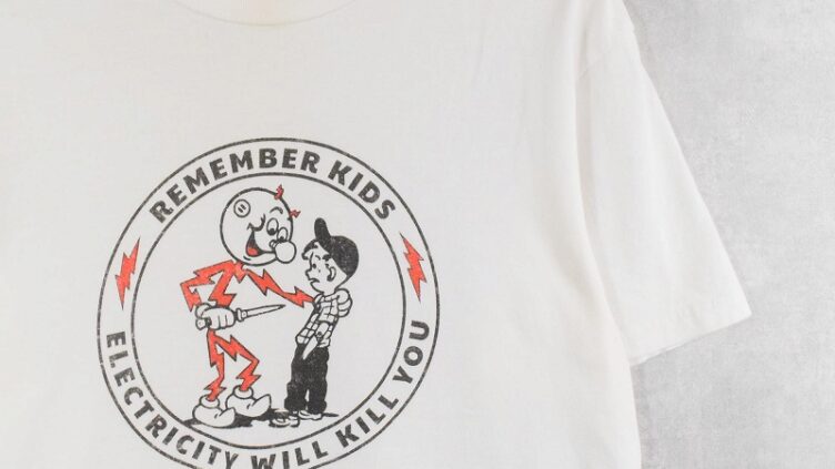 Reddy Kilowatt “ELECTRICITY WILL KILL YOU” キャラクタープリントTシャツ