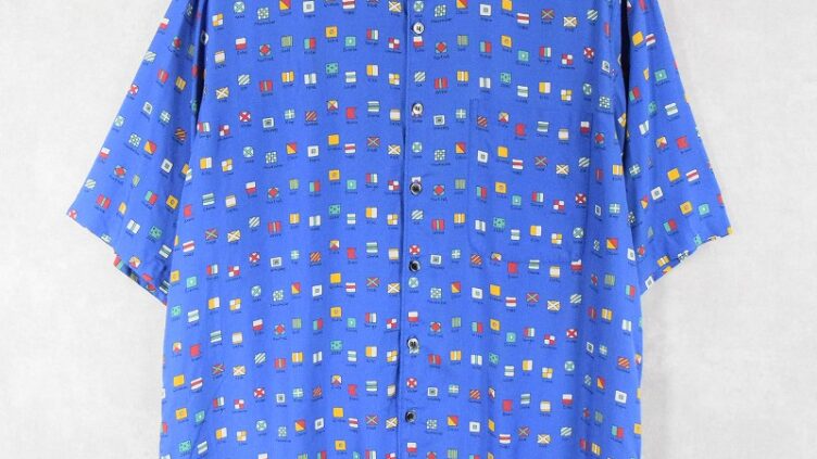 80〜90’s reyn spooner シグナルフラッグ柄 レーヨンシャツ L