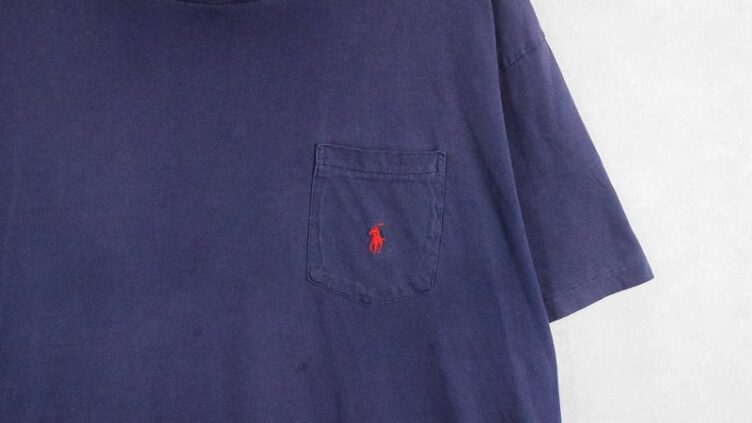 90’s POLO Ralph Lauren USA製 ロゴ刺繍 ポケットTシャツ NAVY L
