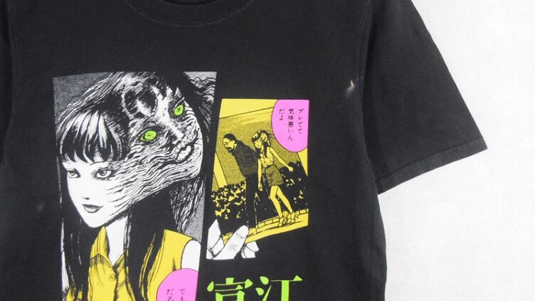 伊藤潤二 “富江” ホラー漫画プリントTシャツ BLACK S