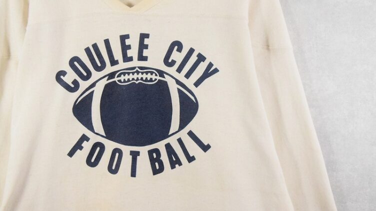 70〜80’s RUSSELL ATHLETIC 金タグ USA製 “COULEE CITY FOOYBALL” Vネック フットボールTシャツ L