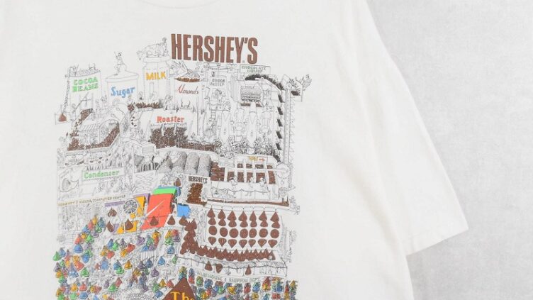 90’s HERSHEY’S USA製 “Chocolate Factory” お菓子企業 イラストプリントTシャツ XXL