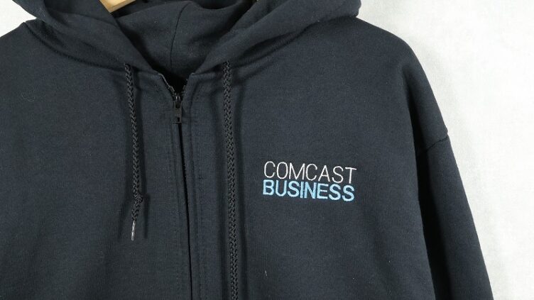 90’s CAMBER USA製 ” COMCAST BUSINESS” 通信企業ロゴ刺繍 裏サーマル スウェットジップパーカー BLACK XL