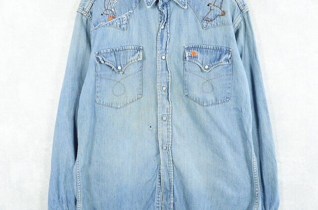 70’s JCPenney ハンド刺繍 デニムウエスタンシャツ