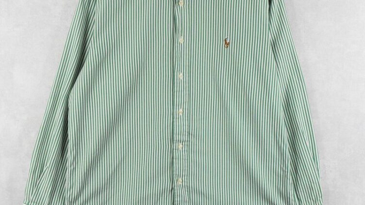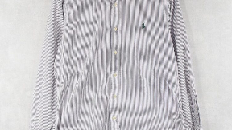 POLO Ralph Lauren “CLASSIC FIT” ストライプ柄 ロゴ刺繍 コットンボタンダウンシャツ SIZE16